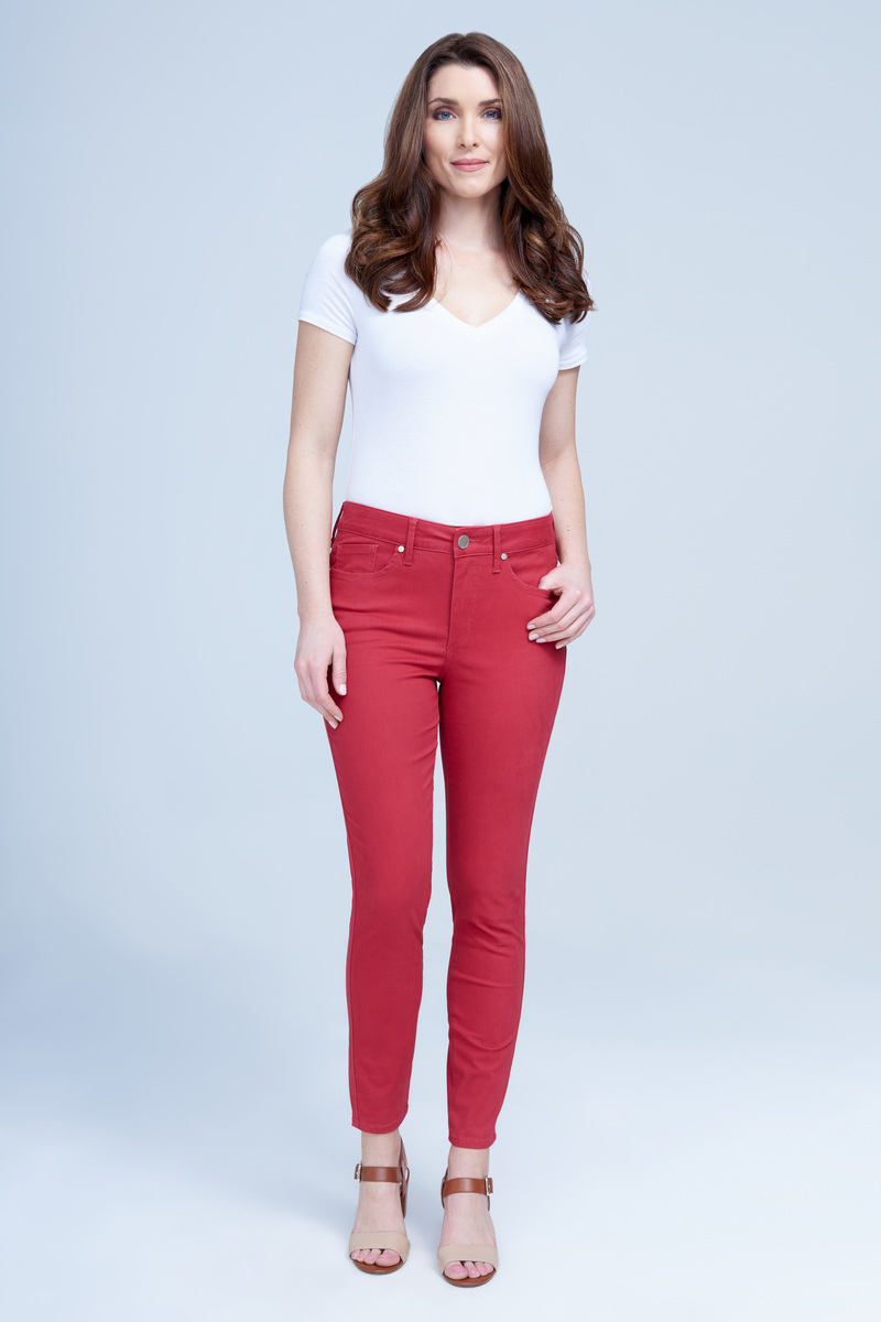 Our classic high-rise skinny jean gives you a sleek, streamlined silhouette in premium denim blended with shape-enhancing stretch. Contoured yet comfortable, the pair has timeless five-pocket design accented by tonal stitching and branded details at the back.