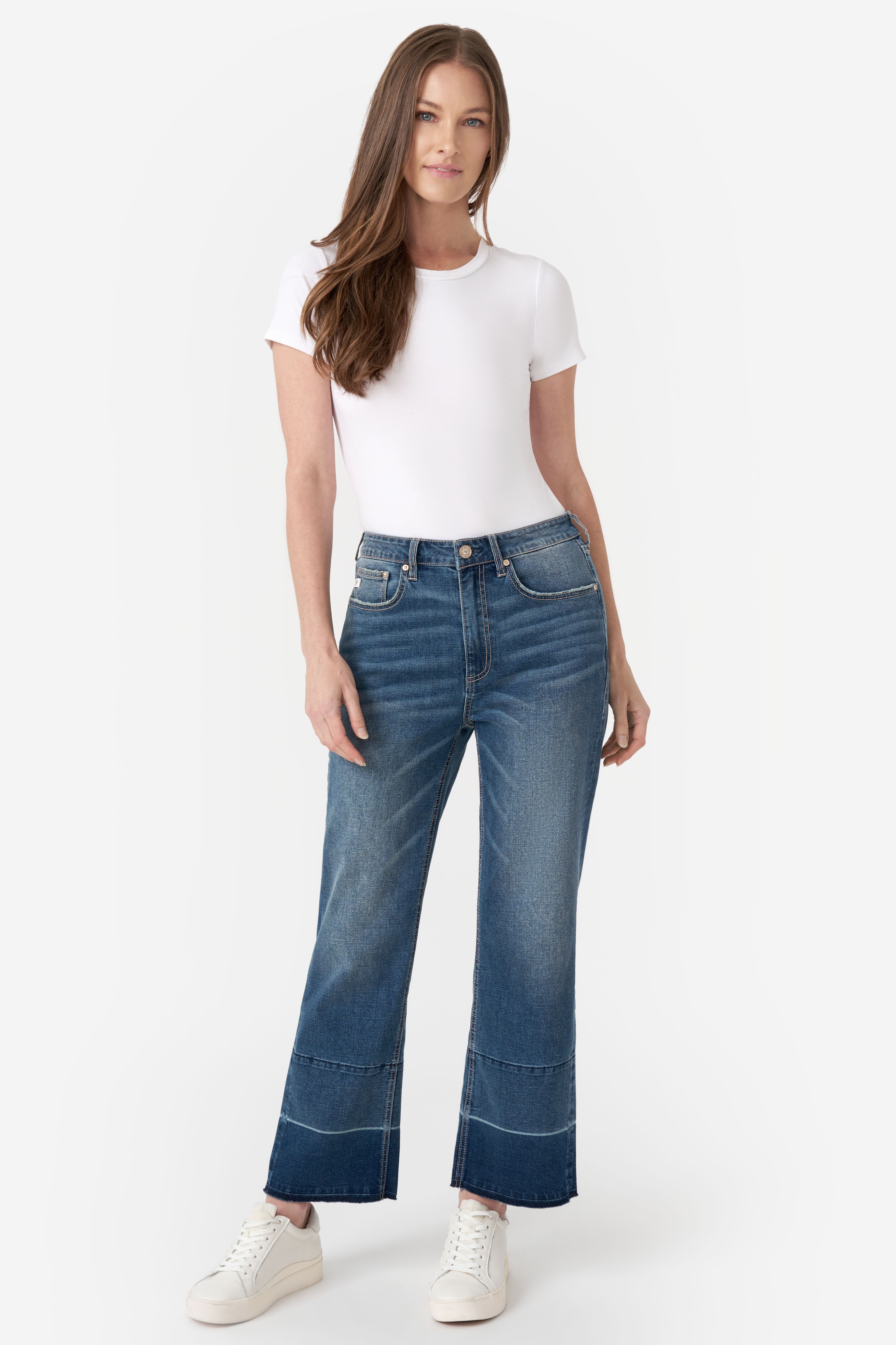 Meet our wide leg jean, designed with high-rise comfort and a relaxed, loose fit through the hip. Featuring a trendy released hem, this versatile style effortlessly transitions from day to night.