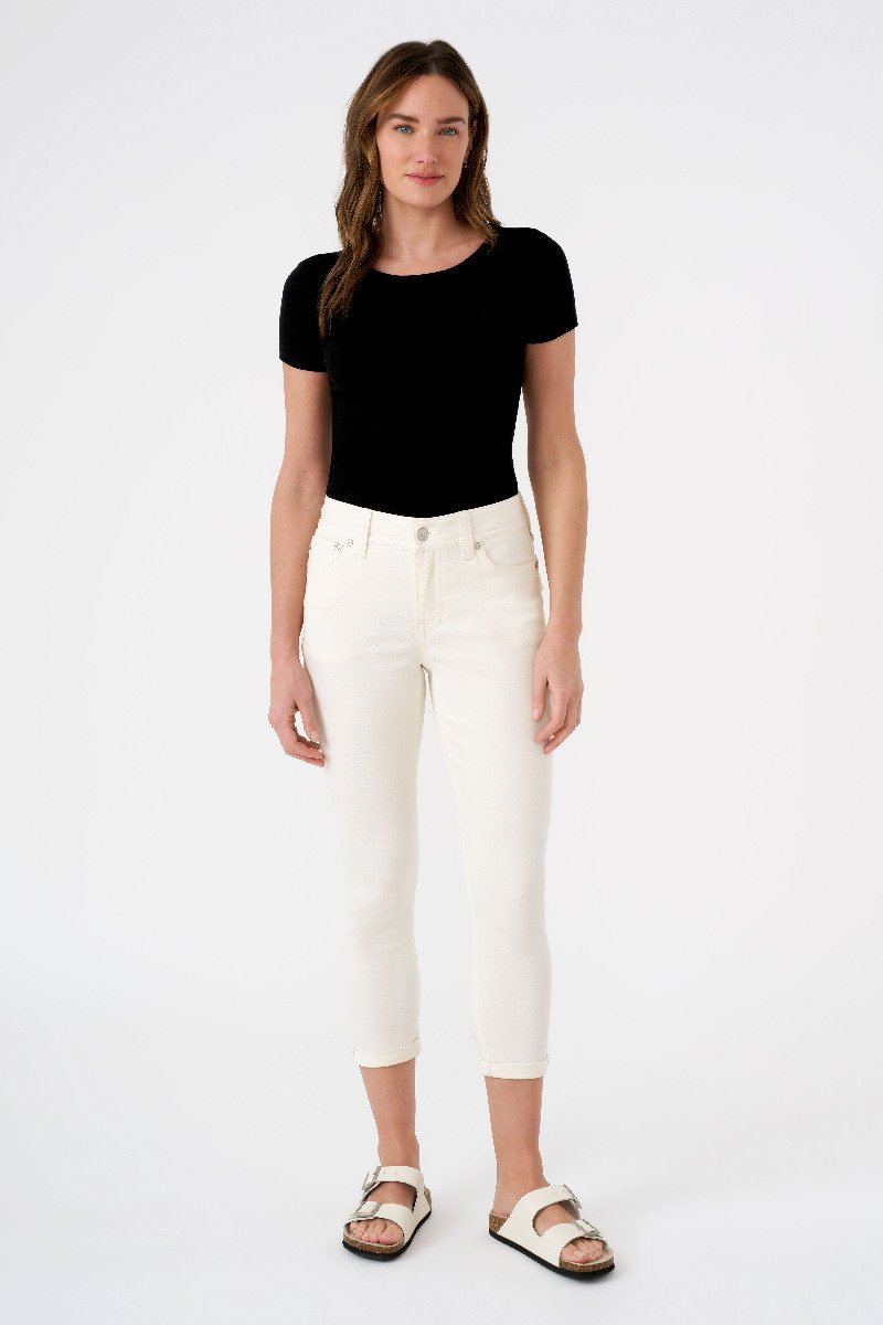 These cropped skinny jeans hug your curves in stretch denim, with button-flap back pockets that enhance your shape. The medium rise is timeless and flattering, while the shorter length pairs perfectly with sandals, wedges, and platforms.