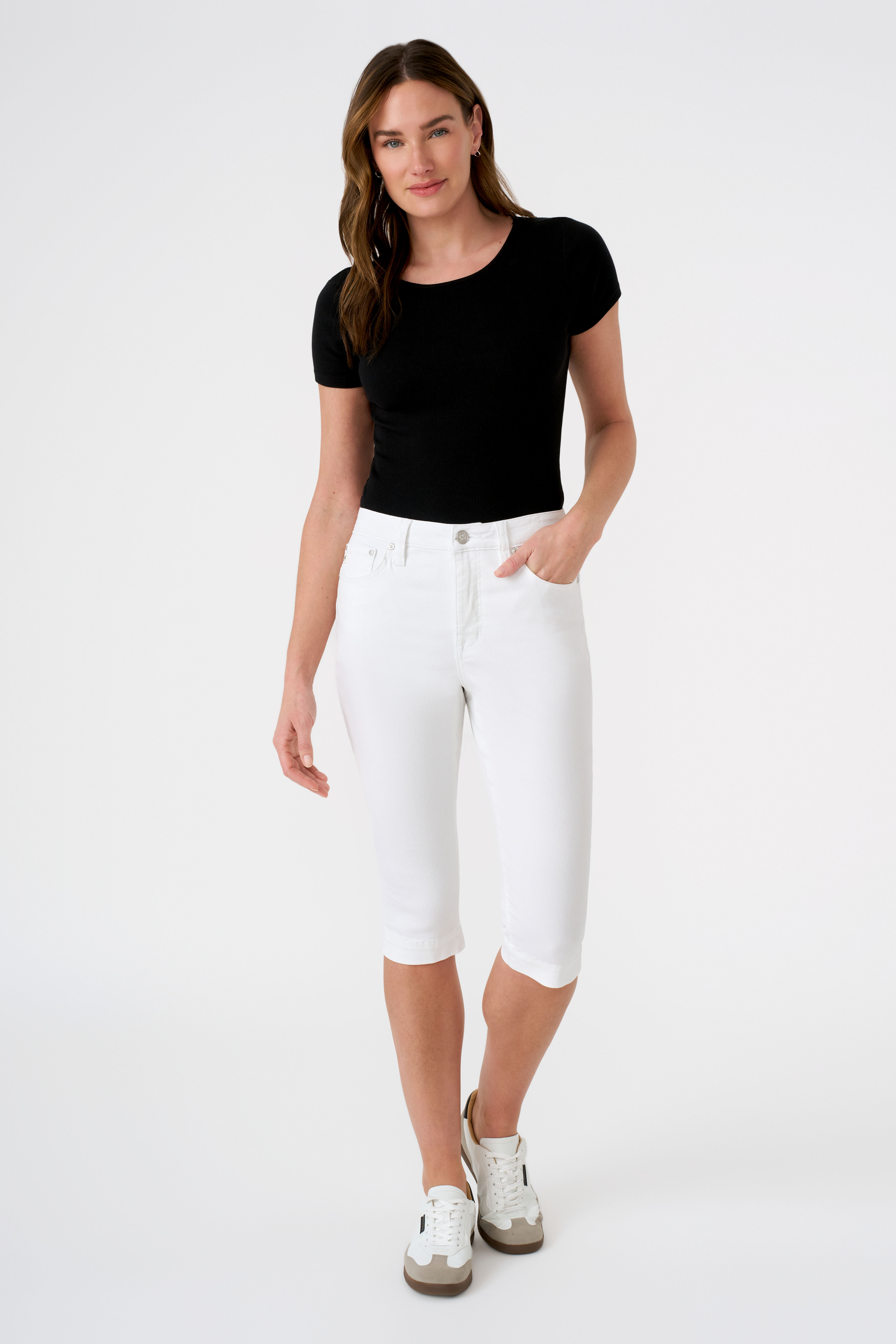 Flattering from every angle, the Audrey Skimmer combines timeless style and everyday ease. Designed with a high-rise fit, classic five-pocket styling, and a length that falls just below the knees, it features a touch of stretch for a comfortable fit you can count on all day long.