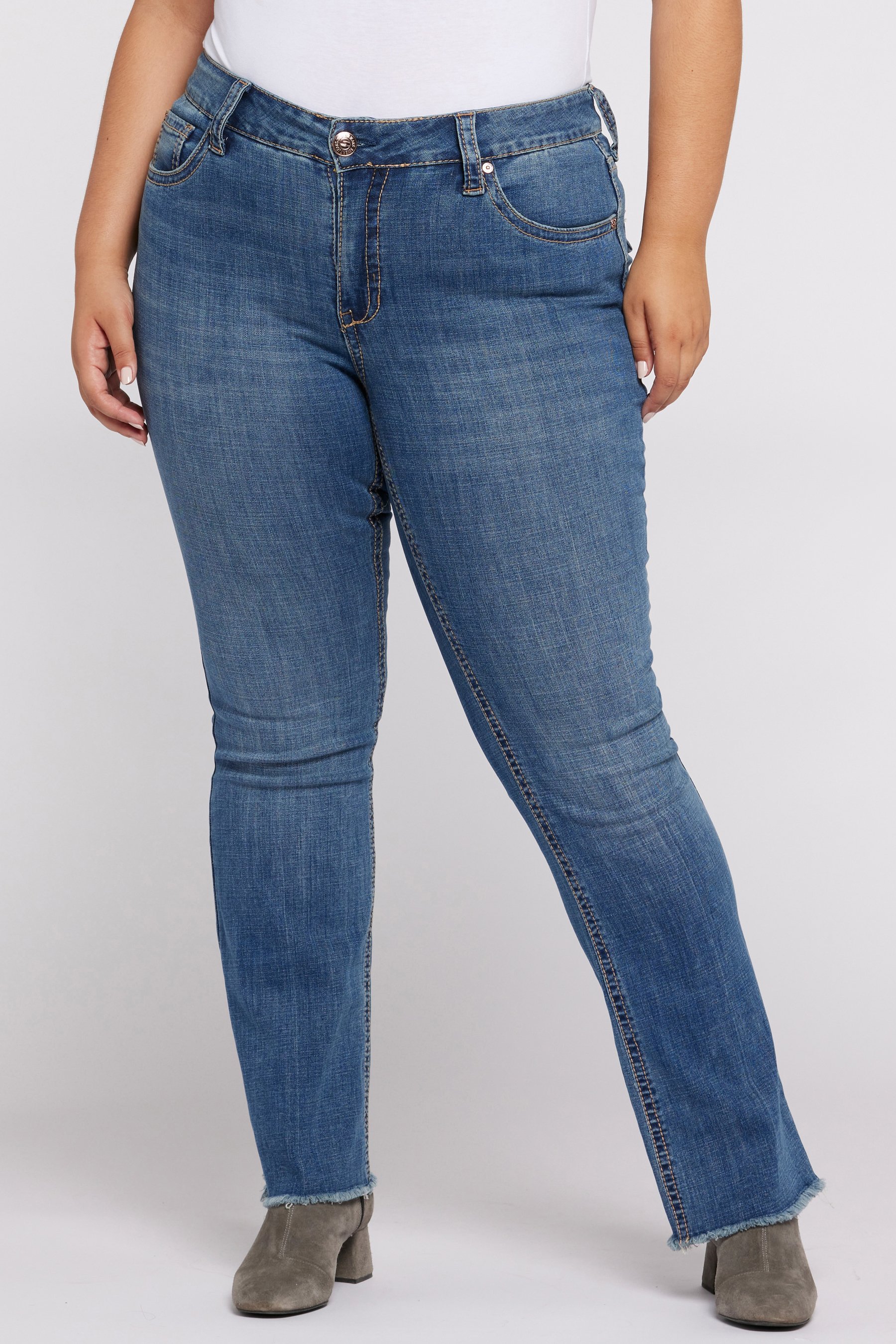 Vintage-inspired boot with curved back yoke, wide contour waist and signature flap pockets. Sits below the waist, with a classic bootcut fit. Made in super stretch slub denim with excellent recovery.